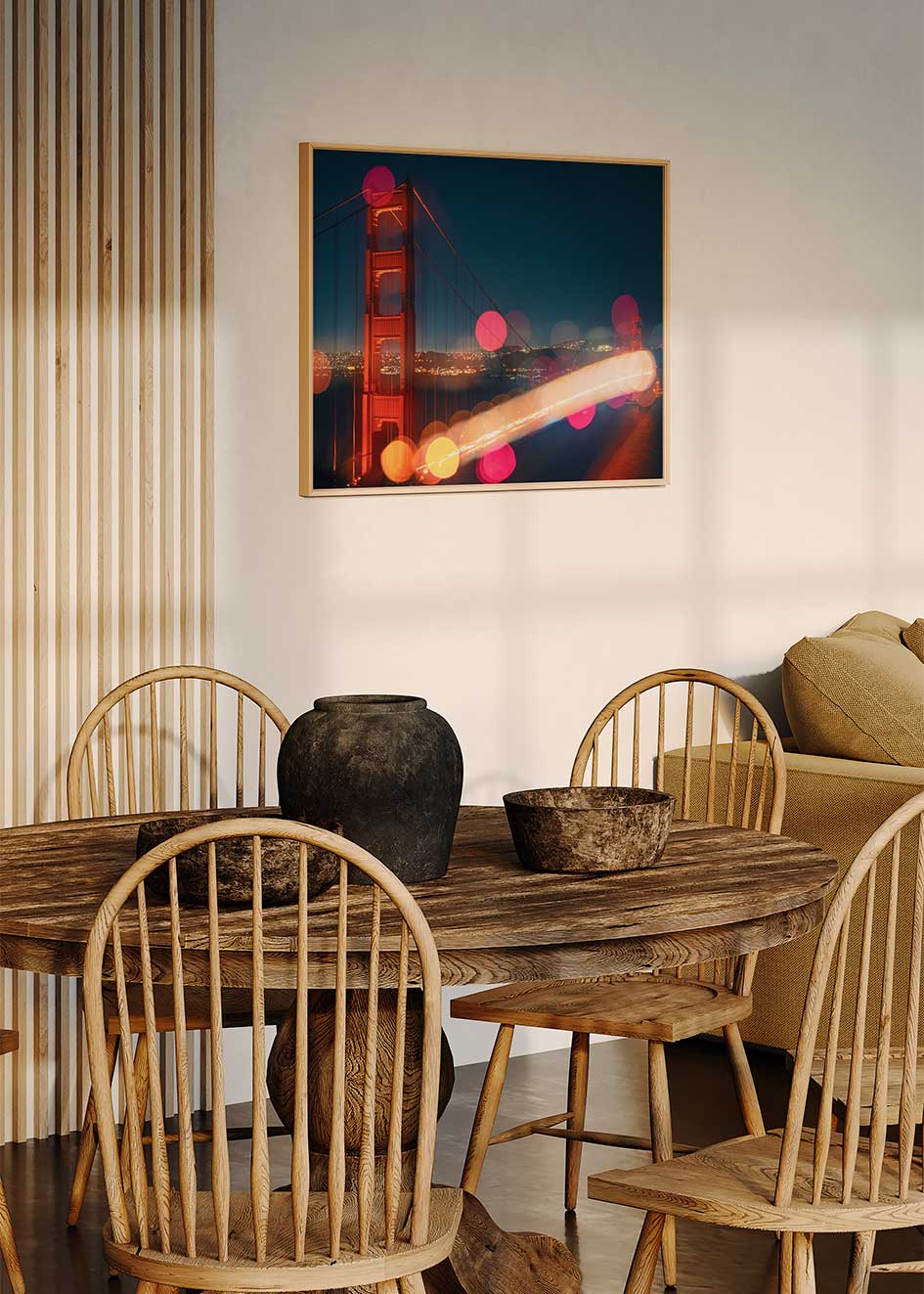 Utilizamos marcos de madera solida cortados con precisión por maquina para la creación de nuestros marcos. Actualmente están disponibles en diferentes acabados de madera, como negro, blanco y madera clara. Además, los marcos tienen caimanes de metal para colgarlos fácilmente.