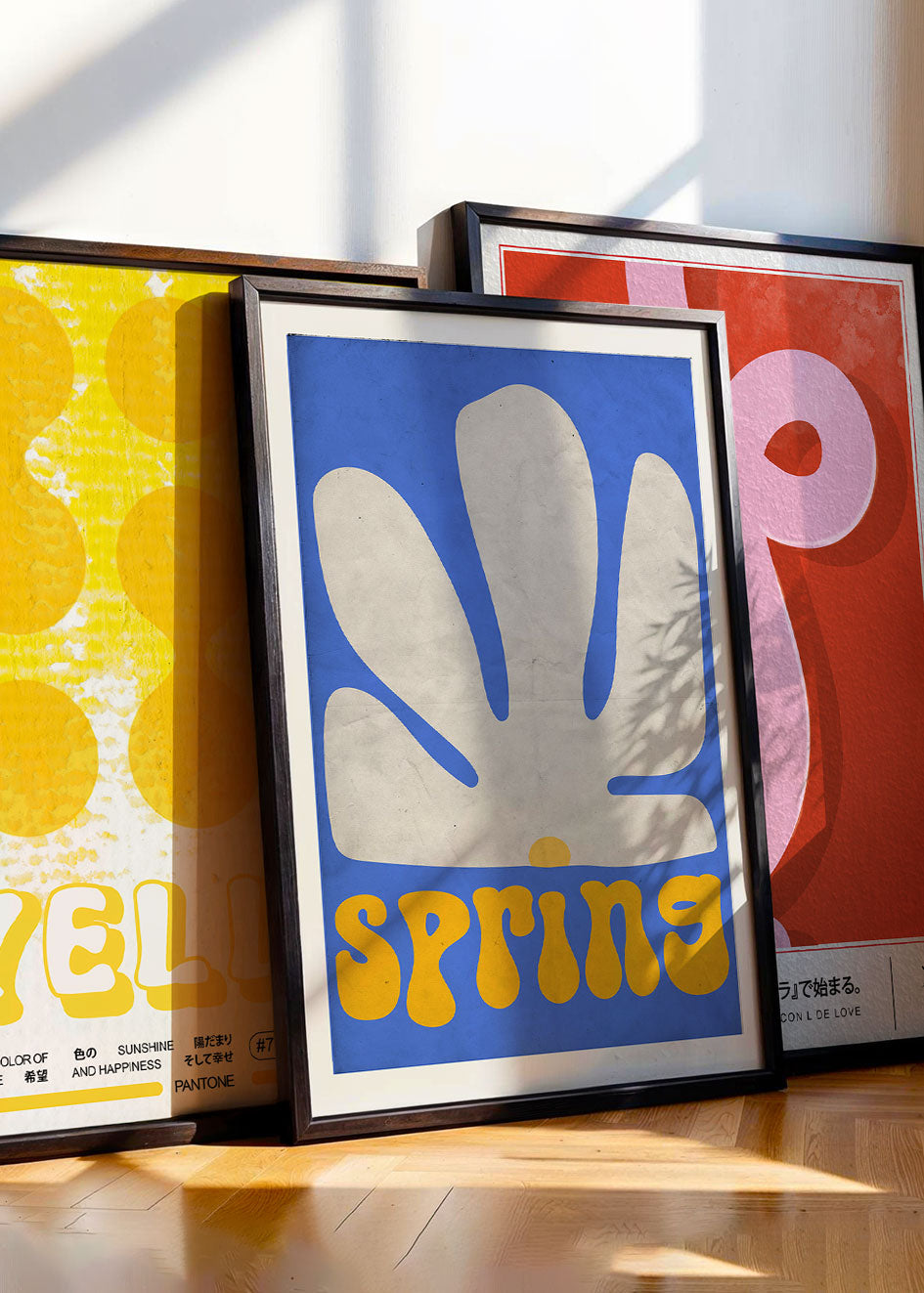 - Escoge una paleta de colores y crea tu propio mural de cuadros combinando varios diseños y tamaños.